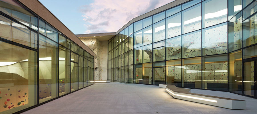 Durch die Glasfassade hat man das Gefühl im Freien zu klettern.