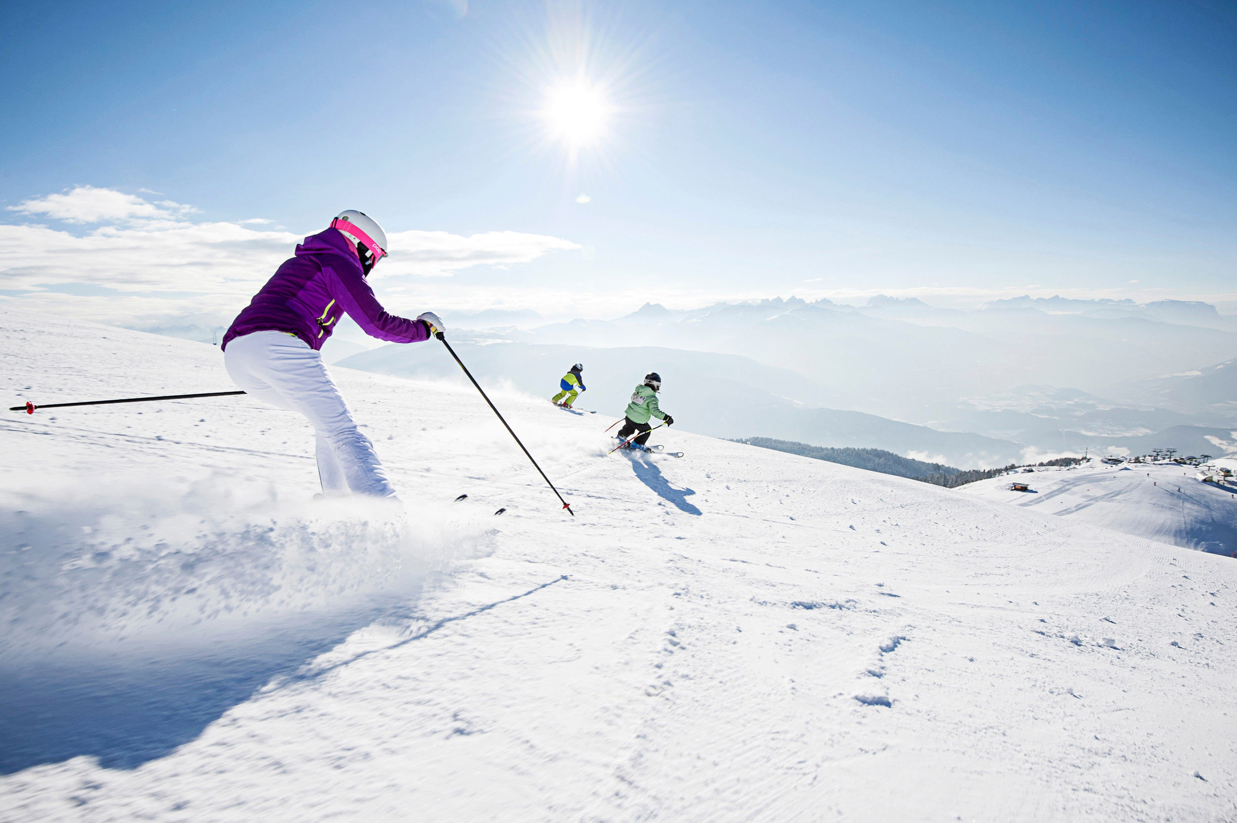 Die großen Skigebiete wie 3 Zinnen Dolomiten, Gröden, Alta Badia oder Kronplatz punkten mit einem atemberaubenden Dolomiten-Panorama sowie anspruchsvollen Abfahrten und lässt auch sonst keine Wünsche offen. Keine Chance für Langeweile, die nächste Herausforderung wartet schon: Durch die verschiedenen Skiverbunde wie die Ortler Skiarena oder das Skikarussell Dolomiti Superski können Wintersportler mit dem entsprechenden Skipass die Pisten von Partnerskigebieten ausprobieren.