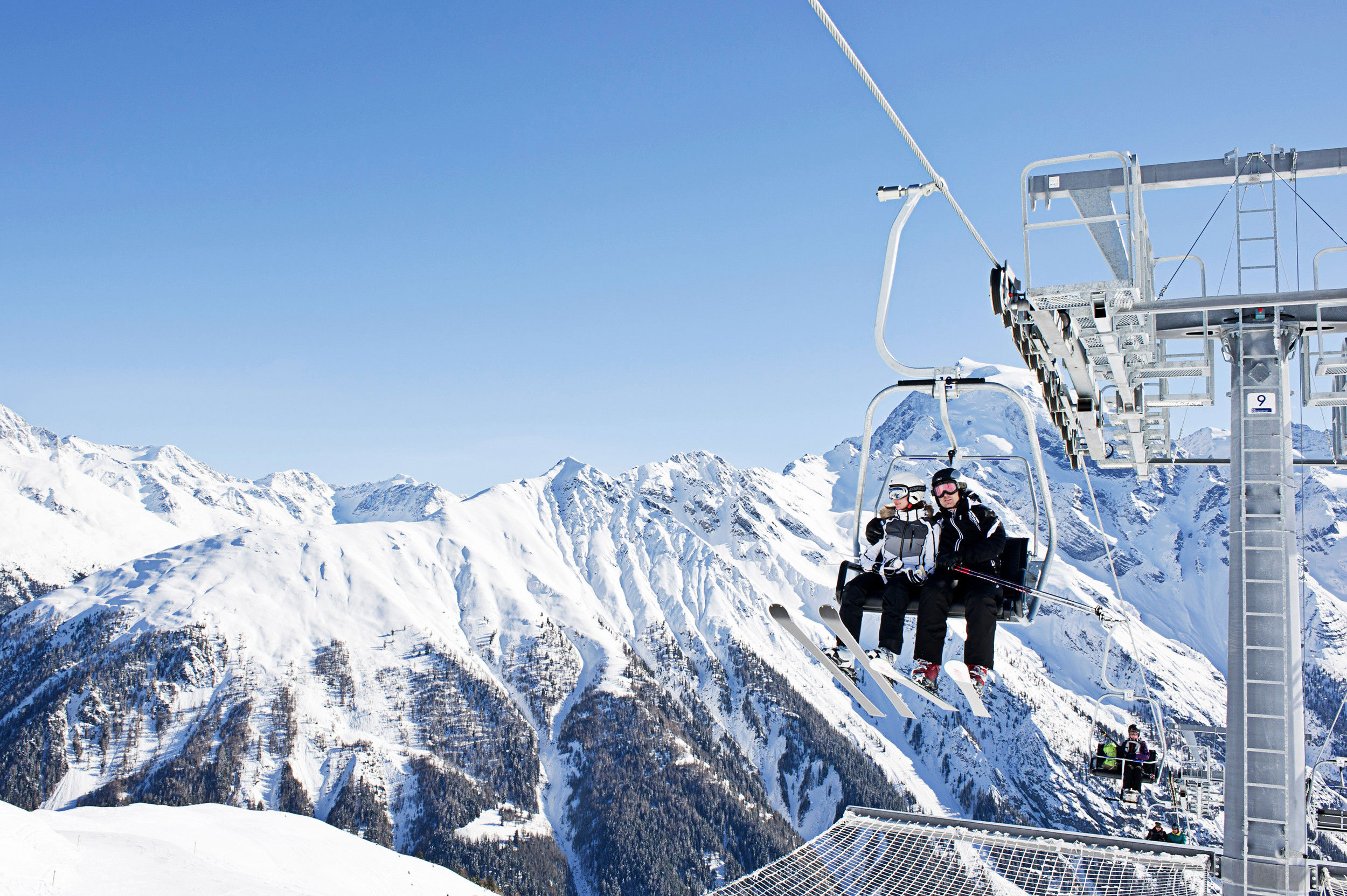 Moderne Aufstiegsanlagen bringen Skifahrer im Skigebiet Ladurns in luftige Höhen.