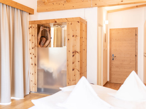Wir bieten unseren Gästen im Südtiroler Stil eingerichtete und kürzlich renovierte Zimmer mit viel Raum zur Entspannung. Highlight in allen Wohlfühl- und Superior-Zimmern sowie in den beiden neuen Turmzimmern ist die persönliche Hydrosoft Wellness-Sauna: So können Sie jederzeit und ganz privat saunieren. Bademäntel und Badeschlappen stellen wir Ihnen dafür in den Hydrosoft-Zimmern zur Verfügung. Freuen Sie sich auch auf abwechslungsreiche kulinarische Genüsse und ausgezeichnete lokale Weine. Unser Koch und sein Team verwöhnen Sie mit einer kreativen Mischung aus traditionellen Südtiroler Spezialitäten und leichten mediterranen Gerichten. Das 4-Gang-Menü mit Salatbuffet und ein gutes Glas Südtiroler Wein sind die besten Voraussetzungen für einen romantischen Abend auf der Terrasse oder in der Stube, im Wintergarten oder unter der Weinlaube.