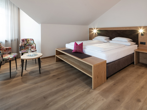 Alle unsere großzügigen Zimmer sind sehr hell und gemütlich ausgestattet, damit Sie sich während Ihres Urlaubs in Südtirol wie zu Hause fühlen können. Unsere Küche freut sich darauf, Sie mit typischen regionalen und internationalen Gerichten verwöhnen zu dürfen, zu denen wir gerne den passenden Wein aus unserem gut sortierten Weinkeller servieren. Auf die kleinen Gäste wartet ein eigenes Kindermenü. Nach einem Tag voller Sport und Energie gibt es nichts Besseres, als in unserem Wellnessbereich zu entspannen und Energie zu tanken.
