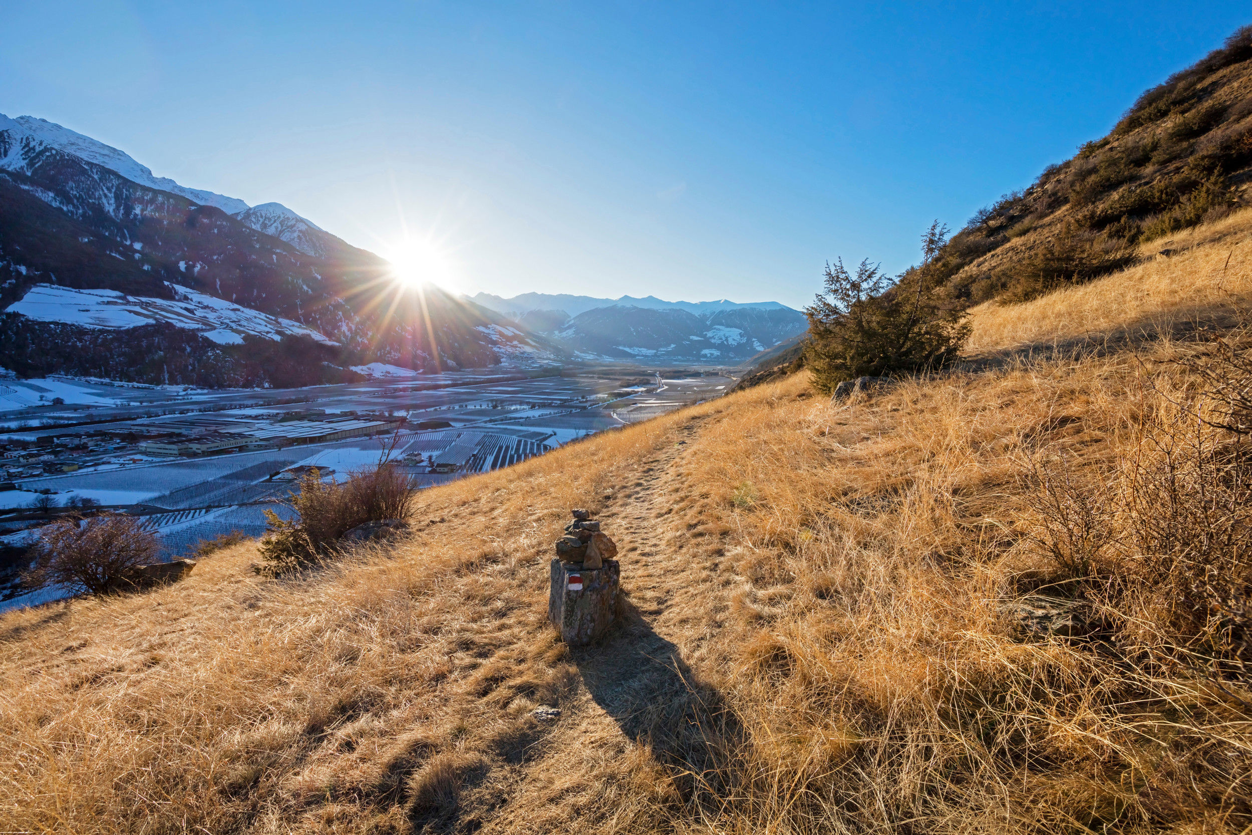 Die beliebten Waalwege schlängeln sich sanft durch Wälder, Weinberge, Obstgärten und über Felder.