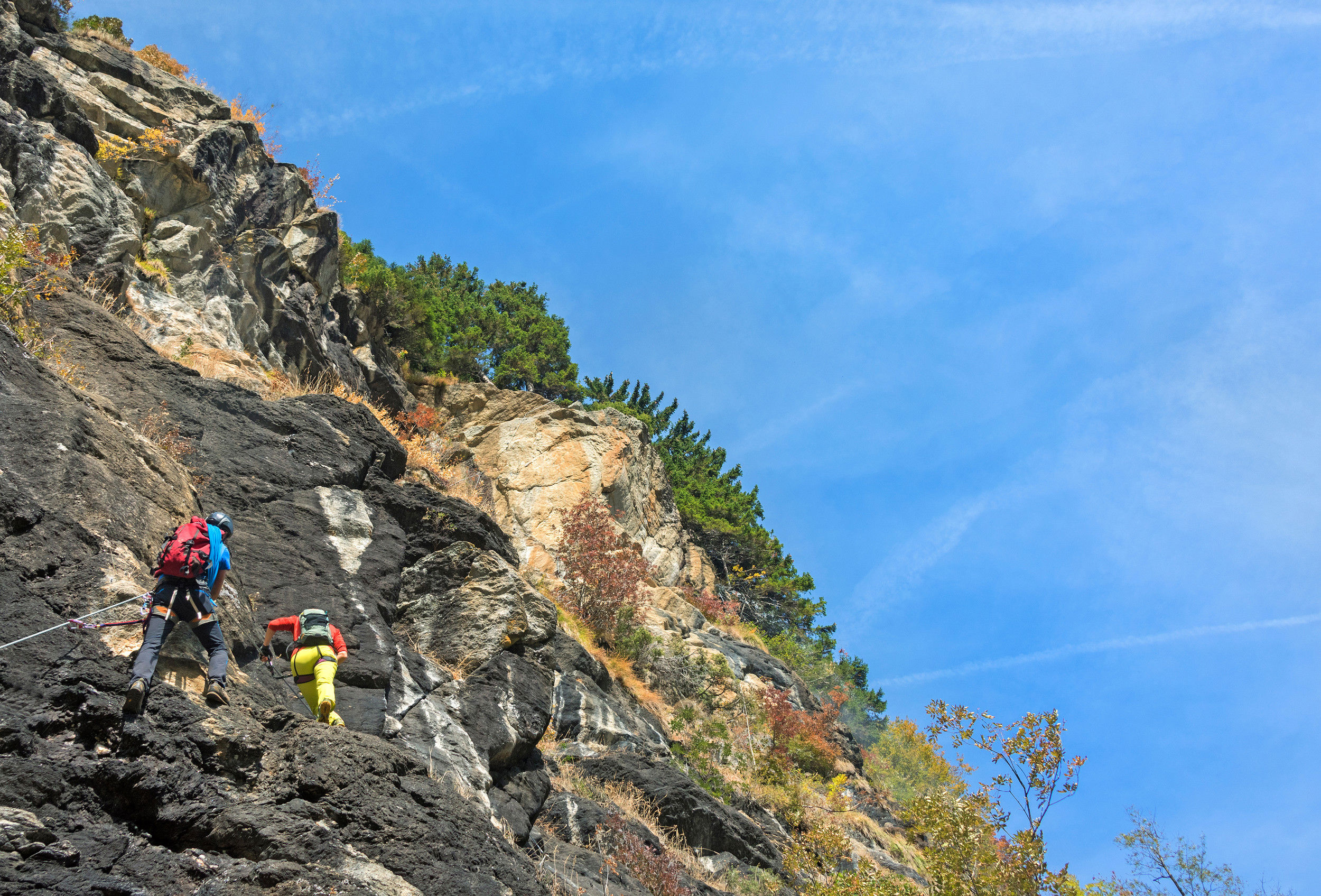 Zurück zum Ausgangspunkt kommt man auf Weg 666 durch das teilweise mit Drahtseilen gesicherte Val Setus.