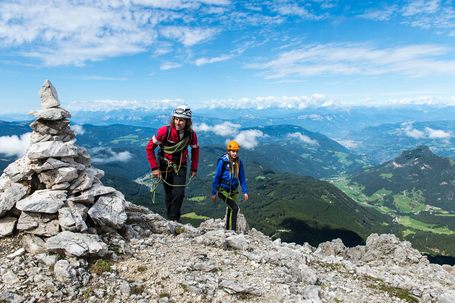 Die Via Ferrata Brigata Tridentina führt vom Grödner Joch über den Exnerturm bis zur Pisciadu-Hütte in der Sellagruppe.