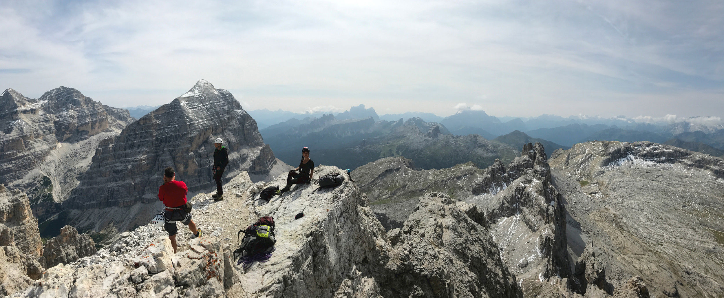 Ganz leicht ist er allerdings nicht, der Pisciadu Klettersteig. Unterhalb des Exnerturms fordert die senkrechte Wand schon etwas Kraft, Ausdauer, Schwindelfreiheit und ein gewisses klettertechnisches Know-How. Nichtsdestotrotz ist die Tour zur Hauptsaison im August oft völlig überlaufen. Also auf jeden Fall in aller Frühe starten!
