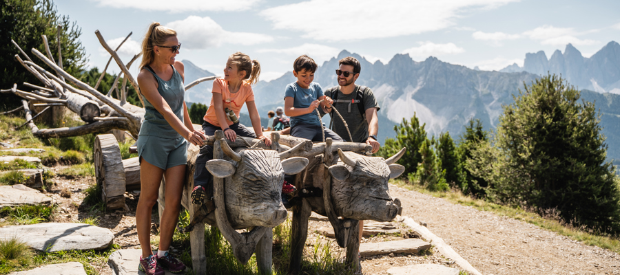 Die 3 km lange Rundwanderung beginnt im Dorfzentrum von Sand in Taufers. Über eine Holzbrücke geht es über den Ahrnbach zur Kapelle Schlosskreuz. Vo dort geht es unterhalb der Burg zum Schlosstor.