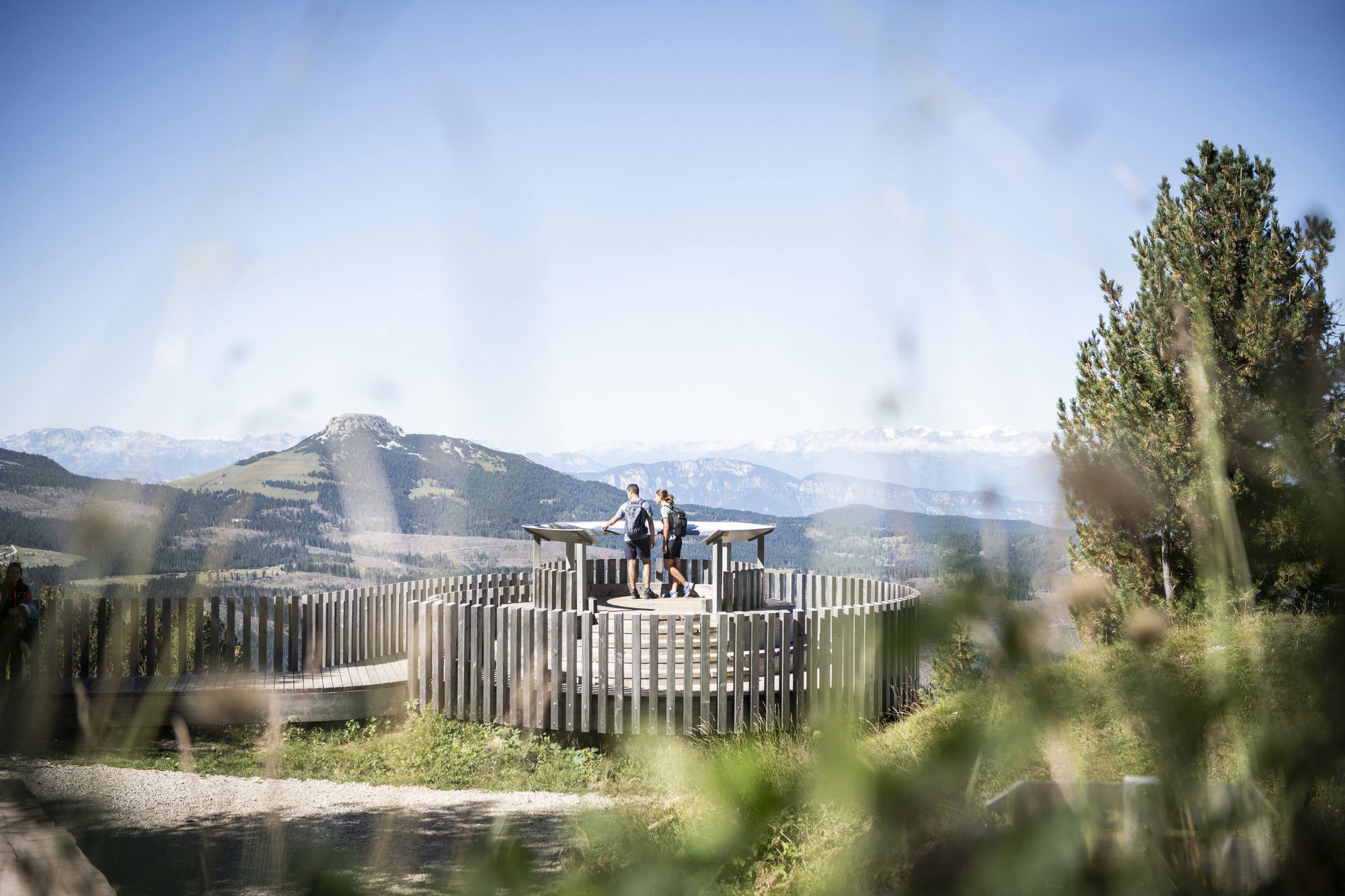 Von Obereggen geht es mit dem Auto oder dem Bus zunächst nach Maria Weißenstein, einem weitum bekannten Wallfahrtsort im Süden Südtirols. Bei der Bushaltestelle zweigt Weg S ab. Wanderer folgen ihr bis zur Schönrastalm und Schmiederalm und wandern auf Weg G weiter zur Lahneralm.