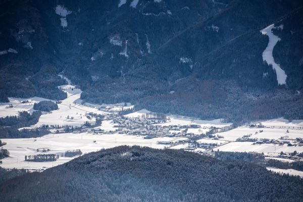Blick nach Südwesten, auf Schloss Bruneck und den Kronplatz
